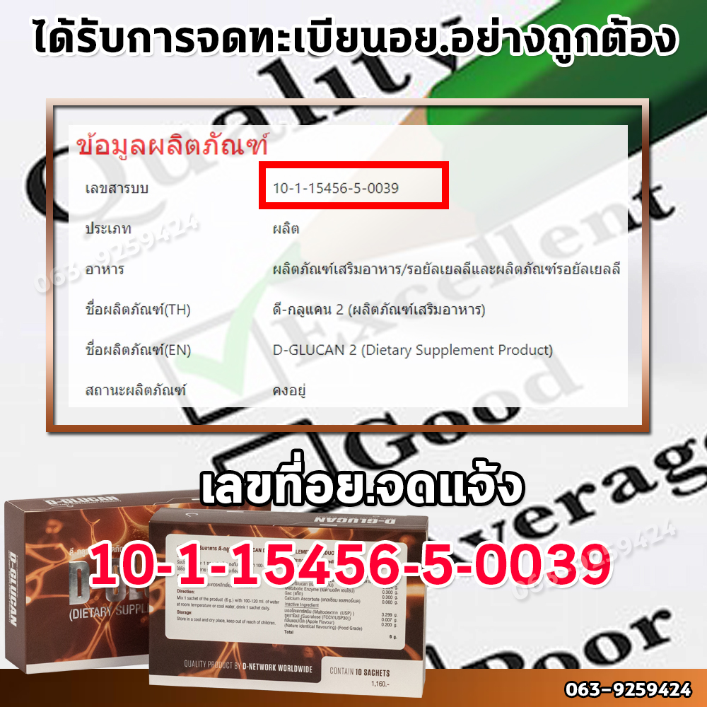 ผลิตภัณฑ์ "ดีกลูแคน2 (D-Glucan2)"ได้รับ อย. อย่างถูกต้องจากองค์กรอาหารและยา